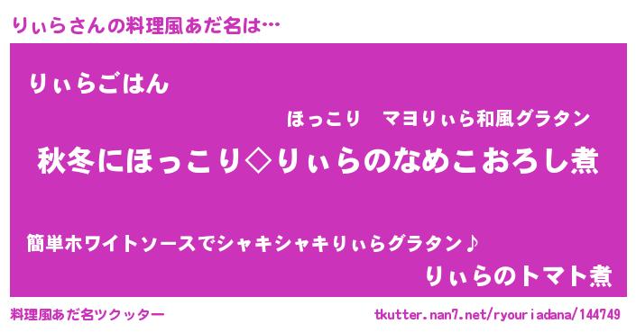 | 意味不明あだ名 | 『もやし科りぃら属』『自称りぃら』 |