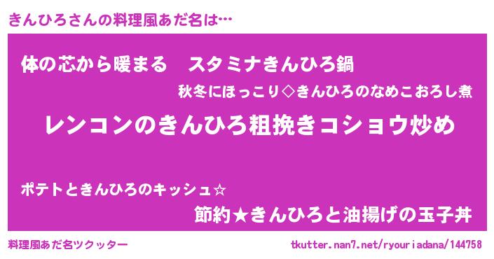 | 胡散臭い通販商品みたいなあだ名 | 『ガンによく効く冬虫夏草…その名も「きんひろ」』 |