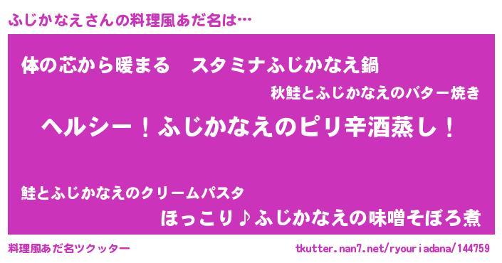 | 意味不明あだ名 | 『自称ふじかなえ』『ペロリンふじかなえ』 |