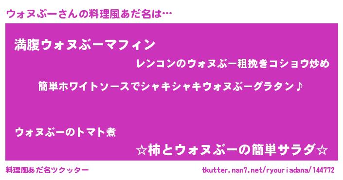 | 男性向けラノベタイトル風あだ名 | 『ウォヌぶーの嫁は女の子じゃないと思った?』 |