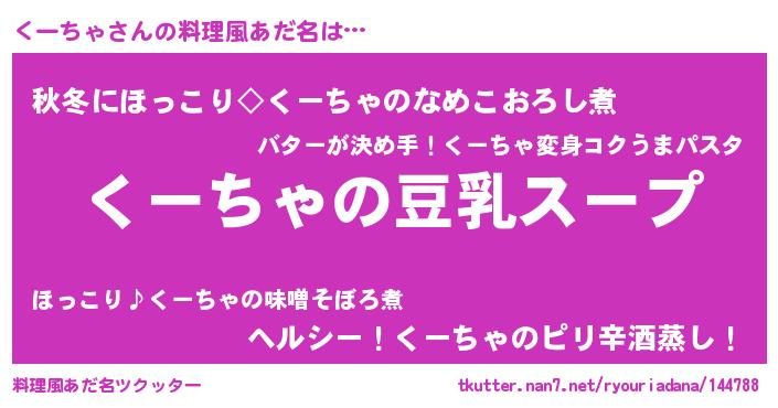 | ヘコむあだ名 | 『くーぷりん』『くーにゅー』 |