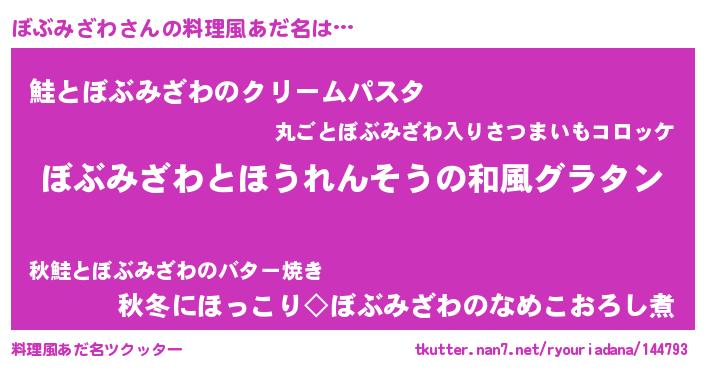 意味不明あだ名 | 『ニラ科ぼぶみざわ属』『自称ぼぶみざわ』 |