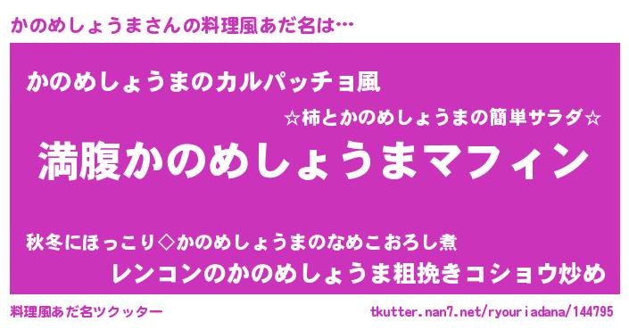 | 意味不明あだ名 | 『永久保存かのめしょうま』 |