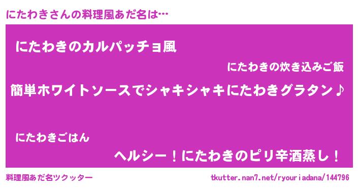 | ポケモン風あだ名 | 『ヒニタワキ』『ニータイ』 |