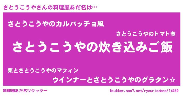 | 意味不明あだ名 | 『住所不定無職さとうこうや(13歳)』 |