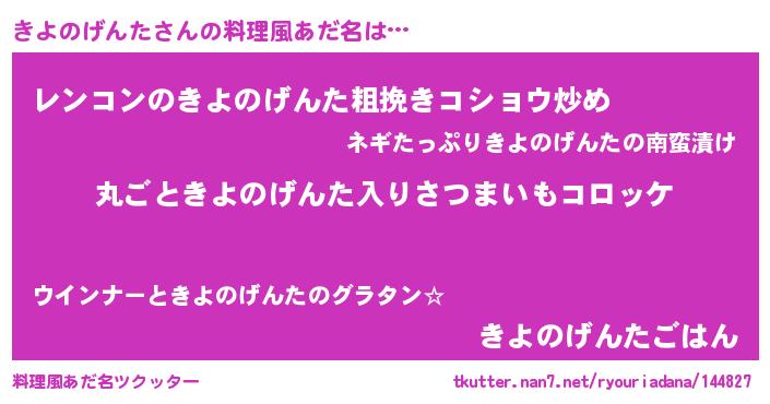 | 意味不明あだ名 | 『住所不定無職きよのげんた(50歳)』 |
