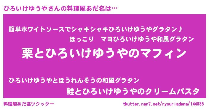 | ヘコむあだ名 | 『ひろぷりん』『ひろいけゆうや(遠い目)』 |