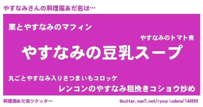 | 胡散臭い通販商品みたいなあだ名 | 『信頼と実績のサプリメント…その名も「やすなみ」』 |