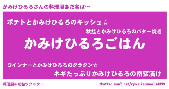 | 男性向けラノベタイトル風あだ名 | 『転生したらかみけひるろだった件』 |