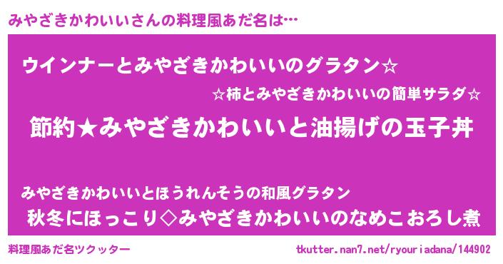 | ヘコむあだ名 | 『みやっふぃ~』『なまこ酢』 |