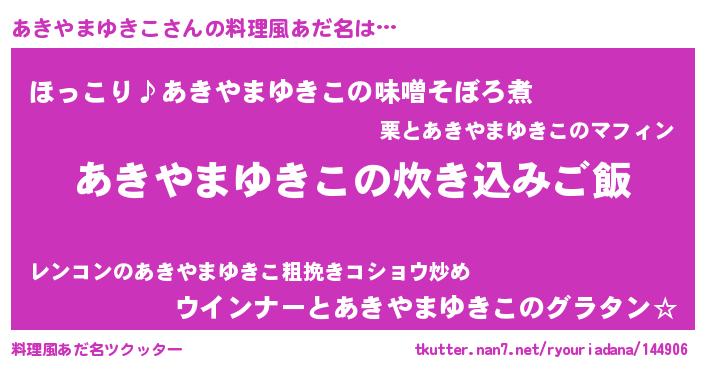 | 恥ずかしいあだ名 | 『プリティーあきやまゆきこ』『あきちん』 |
