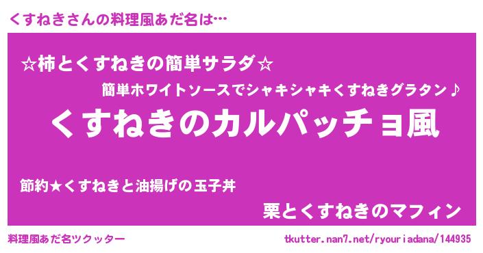 | 女子向けラノベタイトル風あだ名 | 『くすねきが死なない童話 林檎のくすねきの診療簿』 |