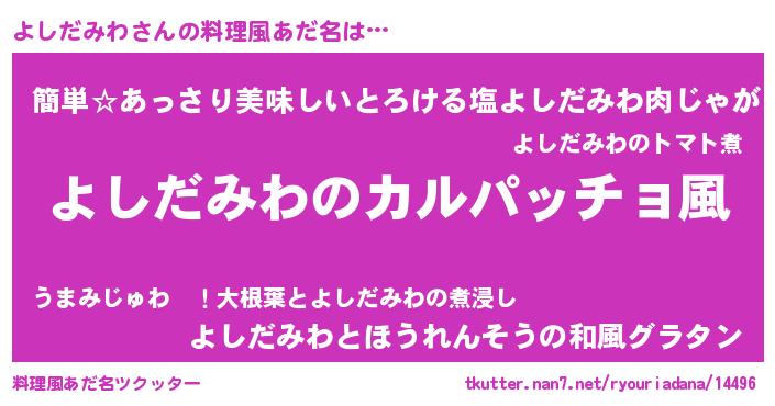 | 意味不明あだ名 | 『住所不定無職よしだみわ(41歳)』 |