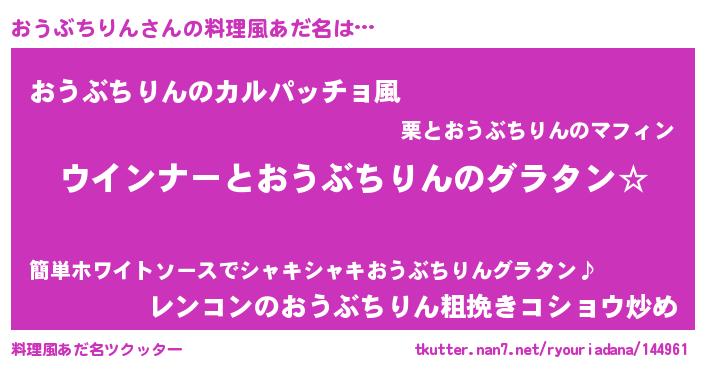 | 胡散臭い通販商品みたいなあだ名 | 『世界が平和になる高級そうな皿…その名も「おうぶちりん」』 |
