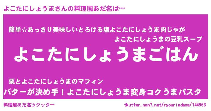 | ヘコむあだ名 | 『よこたにしょうま(苦笑)』『よこっぺ』 |