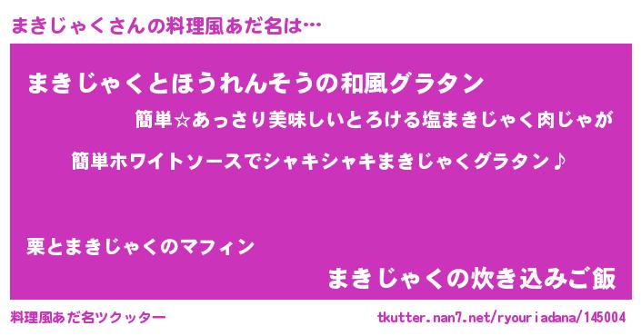 | 男性向けラノベタイトル風あだ名 | 『まきじゃくの嫁は女の子じゃないと思った?』 |