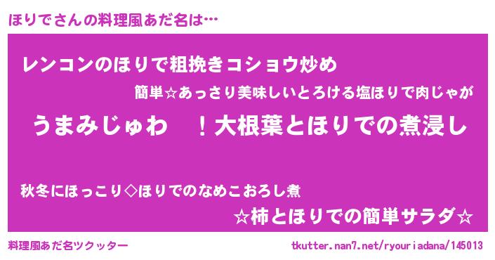 | 意味不明あだ名 | 『ほりでフォーエバー』『自称ほりで』 |