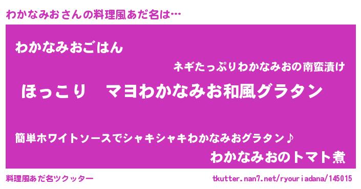 | 胡散臭い通販商品みたいなあだ名 | 『あなたにだけ特別に提供する100年もののヴィンテージワイン…その名も「わかなみお」』 |