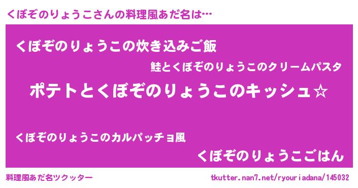 | 欧米人風あだ名 | 『ウサインくぼぞのりょうこ』 |