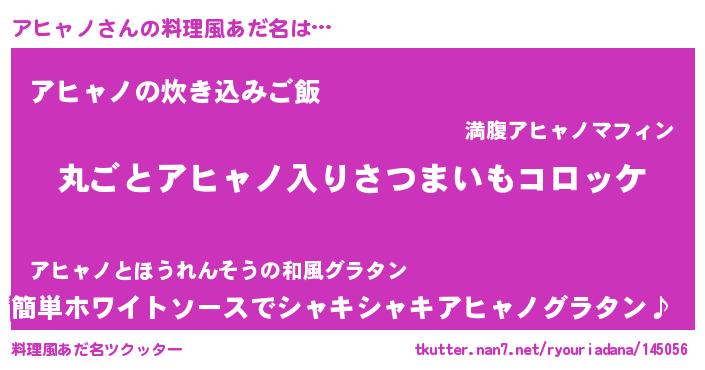 | 意味不明あだ名 | 『住所不定無職アヒャノ(4歳)』 |