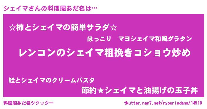 | ヘコむあだ名 | 『シェもー』『豆乳』『シェイマ(笑)』 |