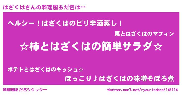 | 意味不明あだ名 | 『自称はざくは』『ペロリンはざくは』 |