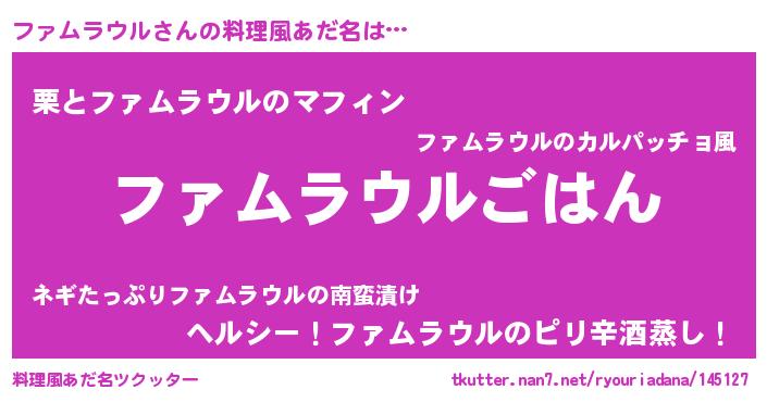 | ヘコむあだ名 | 『ファにゅー』『ファムラウル(爆)』 |