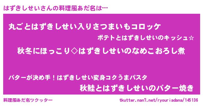 | 胡散臭い通販商品みたいなあだ名 | 『あなたにだけ特別に提供する限定10本のレアな日本酒…その名も「はずきしせい」』 |
