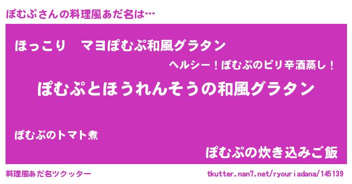 | 意味不明あだ名 | 『ニラ科ぽむぷ属』『自称ぽむぷ』 |