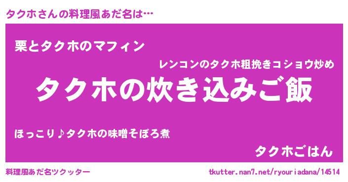 | 意味不明あだ名 | 『なめこ科タクホ属』『自称タクホ』 |