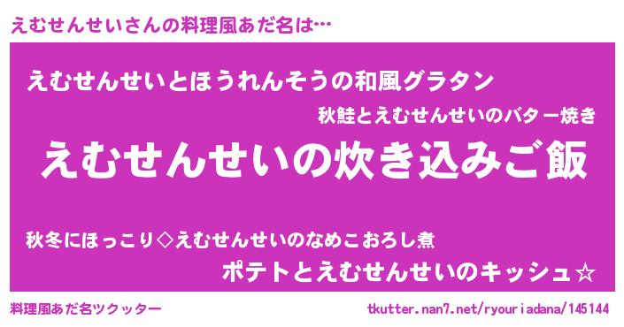 | ヘコむあだ名 | 『えむっ子』『えむせんせい(苦笑)』 |
