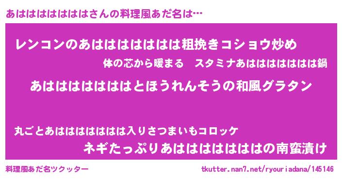 | 女子向けラノベタイトル風あだ名 | 『あはははははははの玉の輿計画!』 |
