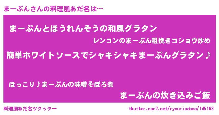 | ピコ太郎風あだ名 | 『マー一郎』『マコ四郎』『ピマ太郎』 |