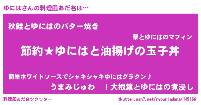 | 意味不明あだ名 | 『ペロリンゆには』『永久保存ゆには』 |