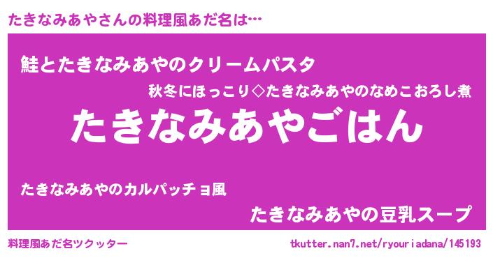 | 男性向けラノベタイトル風あだ名 | 『タキナミアヤスレイヤー』 |