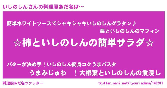 | ピコ太郎風あだ名 | 『イシ十郎』『ピイ一郎』『イイ太郎』 |
