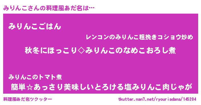 | ヘコむあだ名 | 『みりんこ(笑)』『みりっぺ』 |