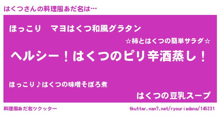 | ヒーロー風カッコイイあだ名 | 『究極戦士ハクツ』『仮面ハクダー』 |