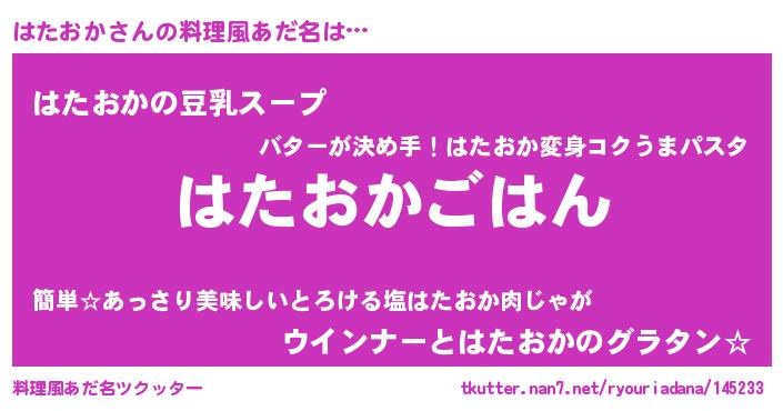 | ヒーロー風カッコイイあだ名 | 『黄金騎士ハタ』『ウルトラはたおかマン』 |