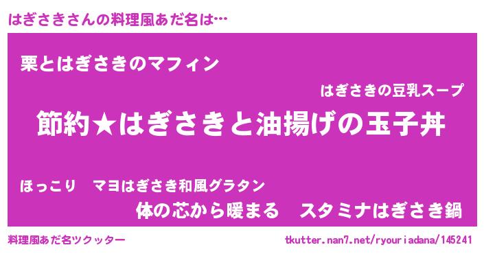 | ファンタジー風あだ名 | 『ハギフェル』『エターナルハギサキー』 |