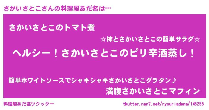 | 男性向けラノベタイトル風あだ名 | 『Re:さかいさとこから始める異世界生活』 |