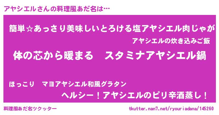 | 欧米人風あだ名 | 『アヤシエルクリステル』 |