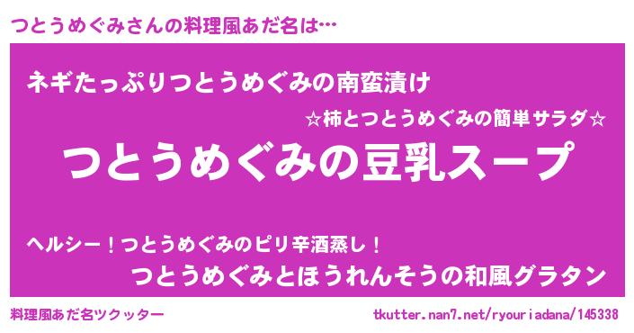 | 意味不明あだ名 | 『とにかく怪しいつとうめぐみ』 |