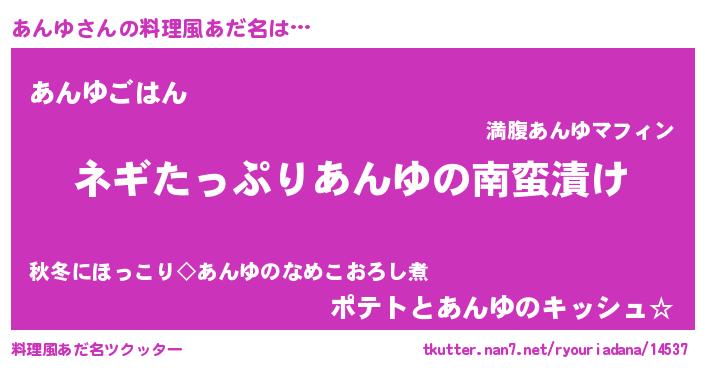 | 意味不明あだ名 | 『ペロリンあんゆ』『なめこ科あんゆ属』 |