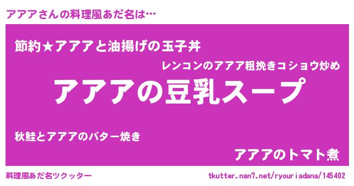 | ヘコむあだ名 | 『アアお』『アアっふぃ~』『豆乳』 |