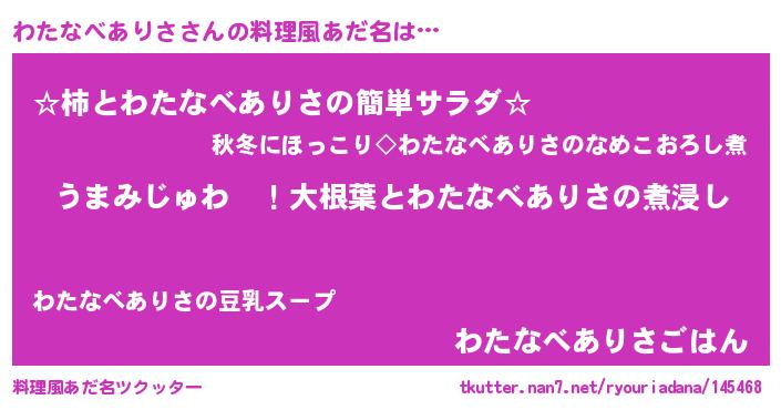 | 意味不明あだ名 | 『わたなべありさフォーエバー』 |