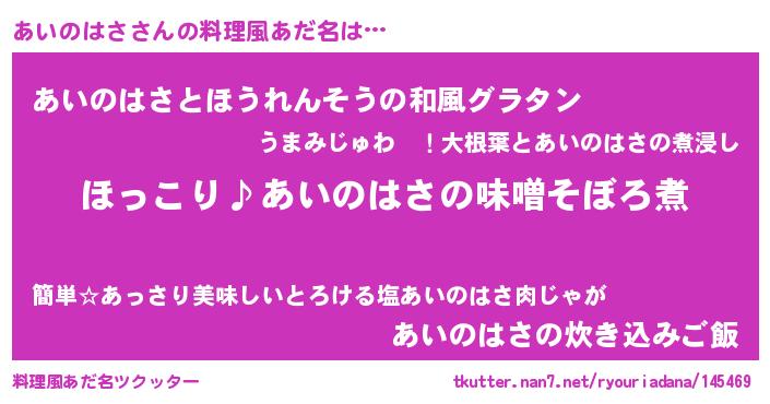 | 意味不明あだ名 | 『ペロリンあいのはさ』 |