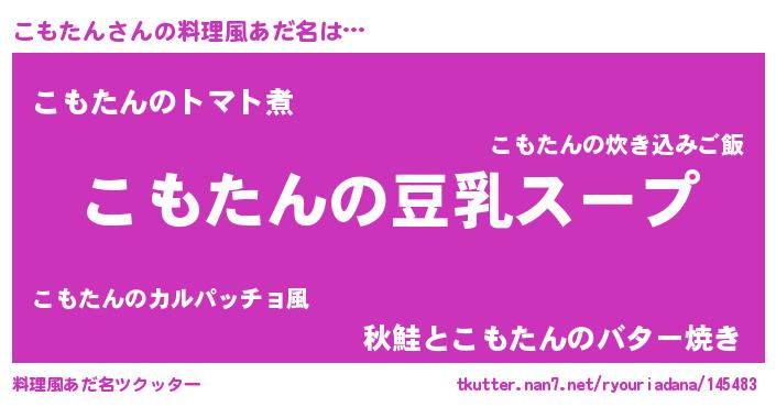 | ピコ太郎風あだ名 | 『コモ十郎』『ココ太郎』『ピココ郎』 |