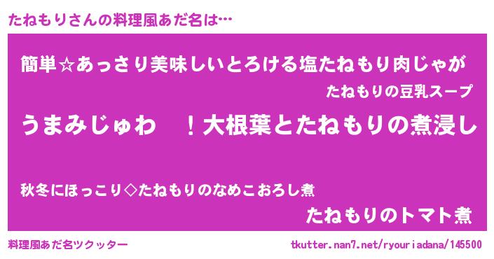 | 欧米人風あだ名 | 『たねもりクリステル』 |