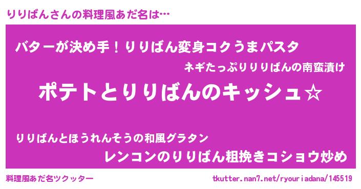 | 男性向けラノベタイトル風あだ名 | 『りりばんの嫁は女の子じゃないと思った?』 |